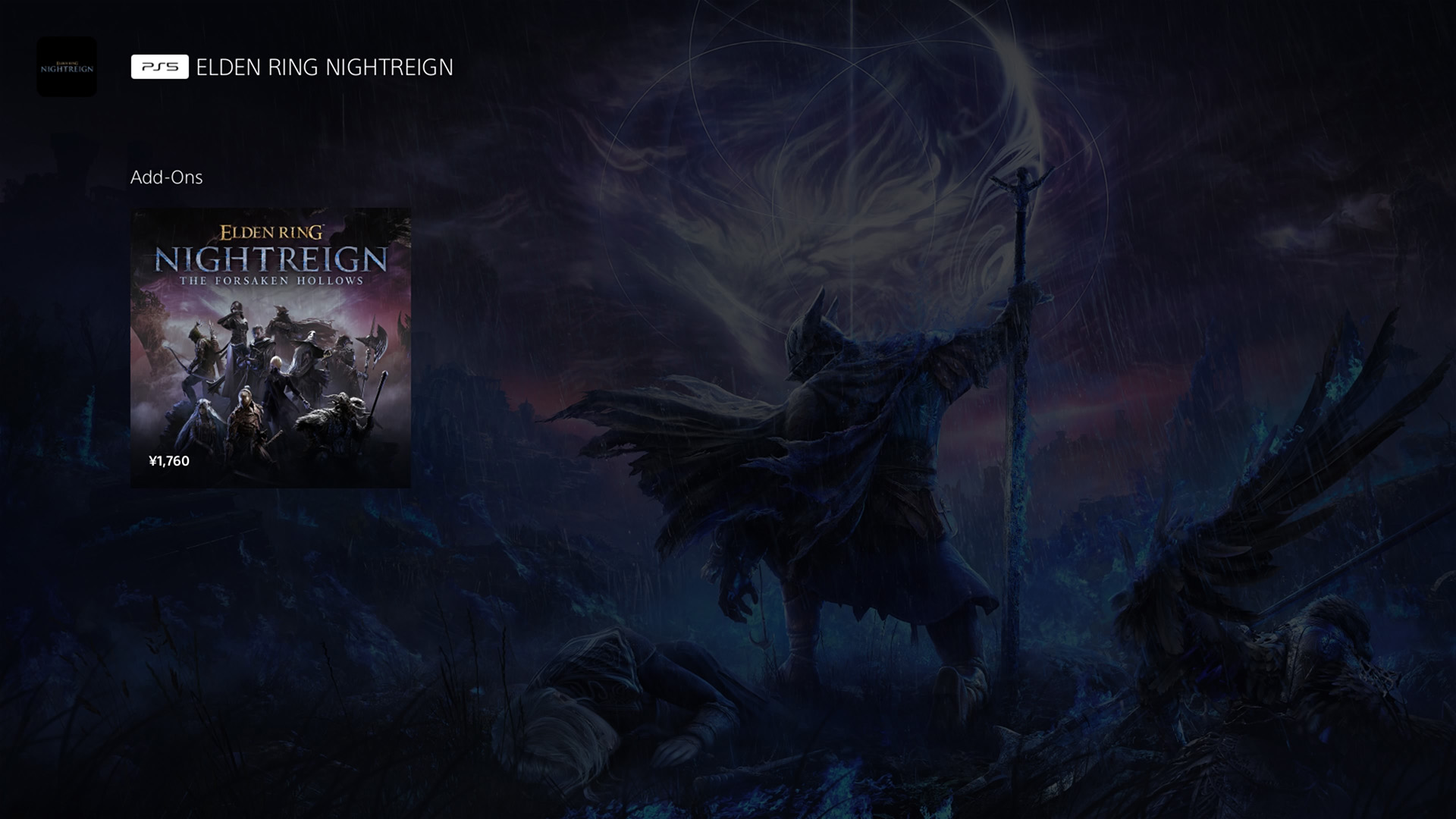 On the PlayStation Store, please search for keywords such as "nightreign" to find and select "ELDEN RING NIGHTREIGN The Forsaken Hollows PS4 & PS5", then proceed to download it.