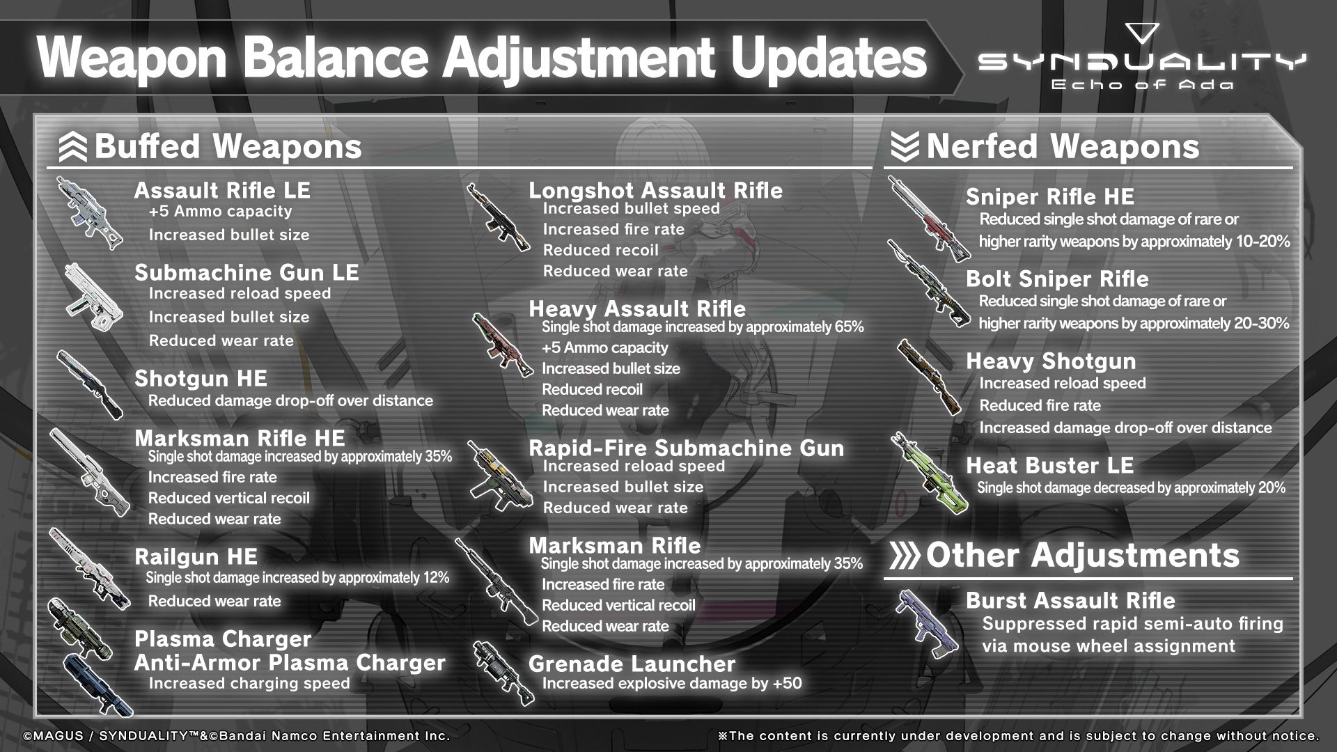 With the release of Rapid Patch 6, SYNDUALITY Echo of Ada continues to refine the gameplay experience in response to community feedback. This quick update focuses on fixing various technical issues while introducing key balance adjustments to improve combat flow, overall stability, and quality of life in-game. Here’s a breakdown of the main changes introduced in this patch.